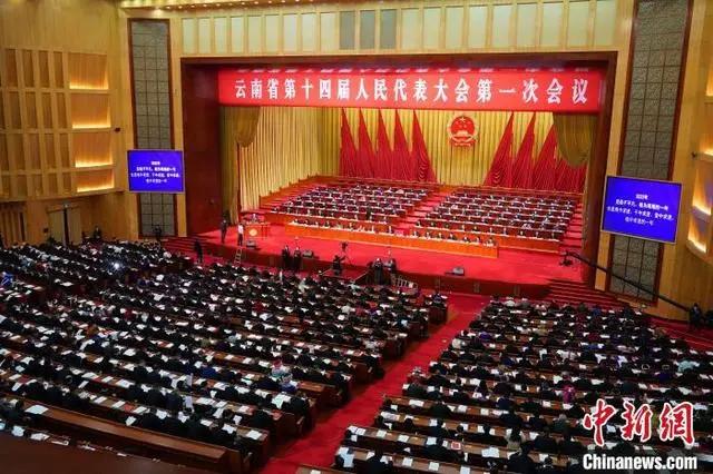 图为会议现场。 刘冉阳 摄 中新网昆明1月11日电(熊佳欣 陈静)11日,云南省第十四届人民代表大会第一次会议开幕,云南省人民政府省长王予波作政府工作报告。报告指出,近年来,云南省区位优势愈发凸显,开放合作务实推进,开放发展取得新成效。2023年,云南将加快做大贸易总量,在推进高水平开放上取得新突破。