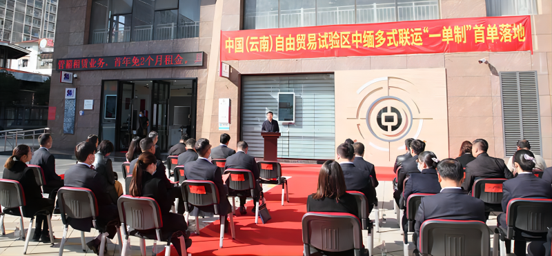 中缅多式联运“一单制”首单落地仪式现场。云南自贸试验区供图